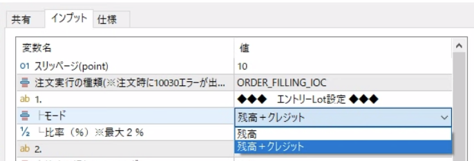 このことを受け、Lot設定のデフォルトを「残高+クレジット」へ変更します。