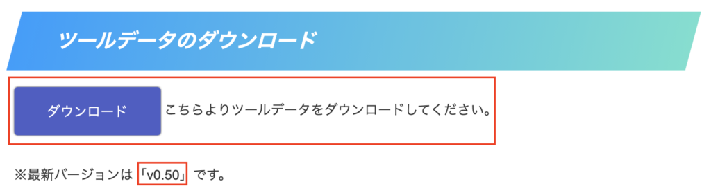 【導入マニュアル】のダウンロードボタンよりダウンロードしていただき、データの更新をお願いいたします。